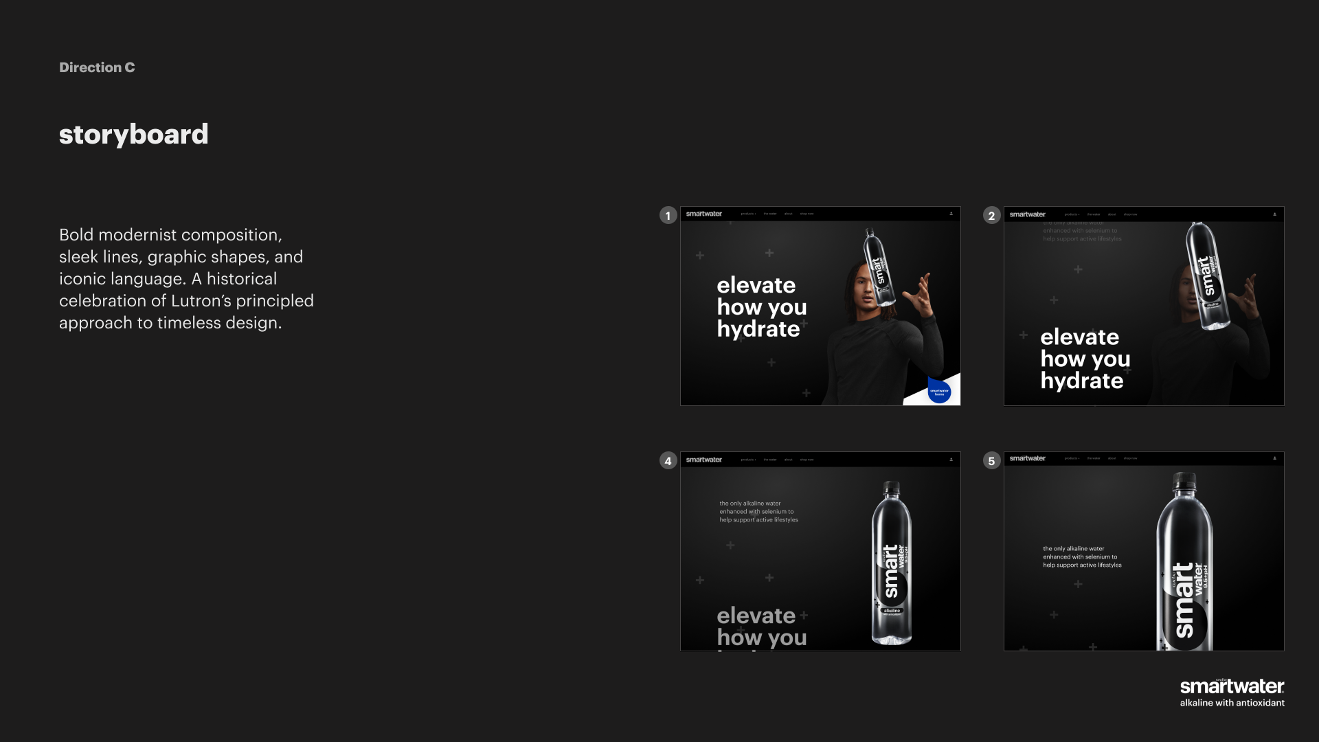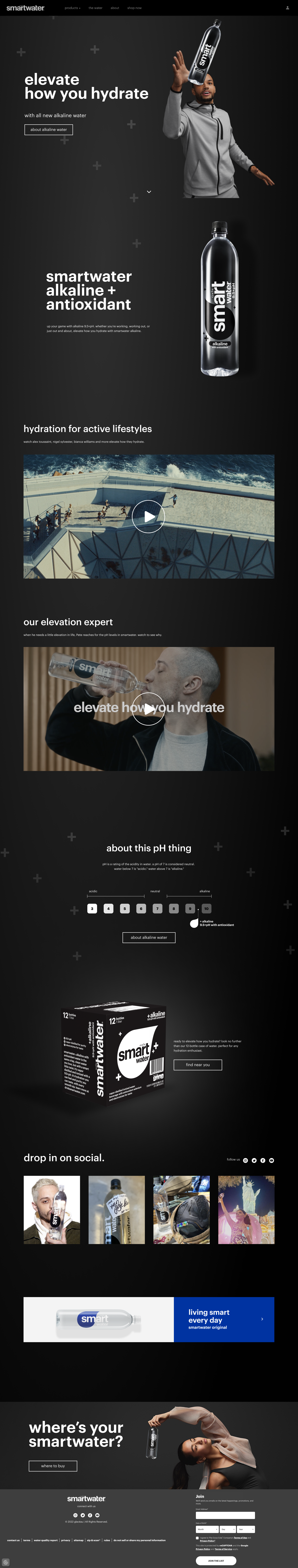 A key feature of the experience was a fluid, high-impact animation that transitioned the Smartwater bottle from hand to screen, creating a seamless bridge between campaign visuals and deeper product insights. The site highlighted the elevated pH levels and unique features of Smartwater Alkaline, ensuring consumers could easily understand what set it apart.